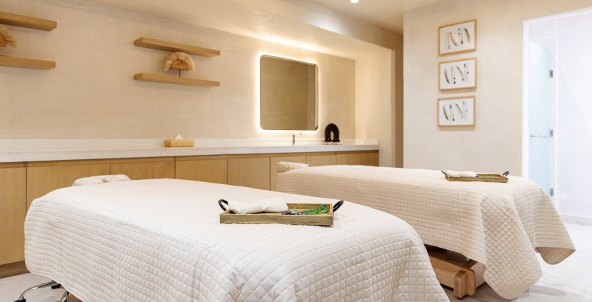 The facility has spectacular sea views from several of the treatment rooms, a beauty salon, a bridal lounge, and a gorgeous retail area. The menu is comprehensive, with a variety of classic massages, facials, reflexology, body treatments, men’s services, and couples’ packages. The emphasis on local “ingredients” is what stands out, particularly the use of Maroma sea moss with antioxidant and detoxifying properties. Locally-sourced herbs, plants, and traditional Mayan techniques, some with pre-Hispanic origins, are also incorporated.