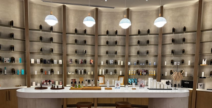 When asked, the receptionists explain the aesthetic is “Organic Minimalism” with its strategically placed rocks and stones, and furnishings and light fixtures with curved shapes, creating an effect that is at once bold and comforting. With this vibe, it is initially hard to believe the spa holds 55 treatment cabins, a hydrotherapy circuit, sauna, steam room, and relaxation lounges. Thoughtful amenities distributed throughout include heated ergonomic loungers, chlorophyll-infused water, and healthy snacks.