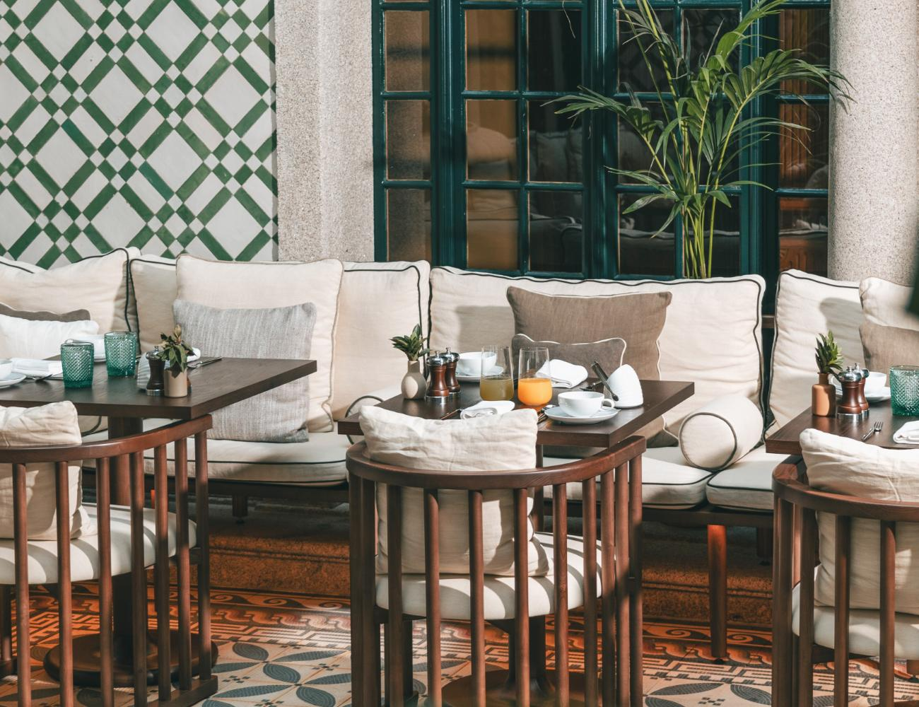 Mornings begin gently. Breakfast is served in the Bistro. A covered courtyard of azulejo tiles, stained glass and a sculpted water feature; the serpent-like “S” of Severo’s design legacy still flowing in stone. Stories season the meal. Salted butter arrives from the Azores. Beans from Arabia, Colombia and Ethiopia are ground and blended on site to create a distinctive house coffee.